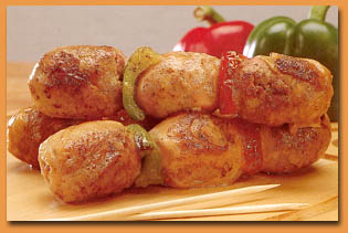 4 personnes : 4 belles andouillettes, 8 petits oignons blancs. 1 poivron vert, 4 petites tomates. |